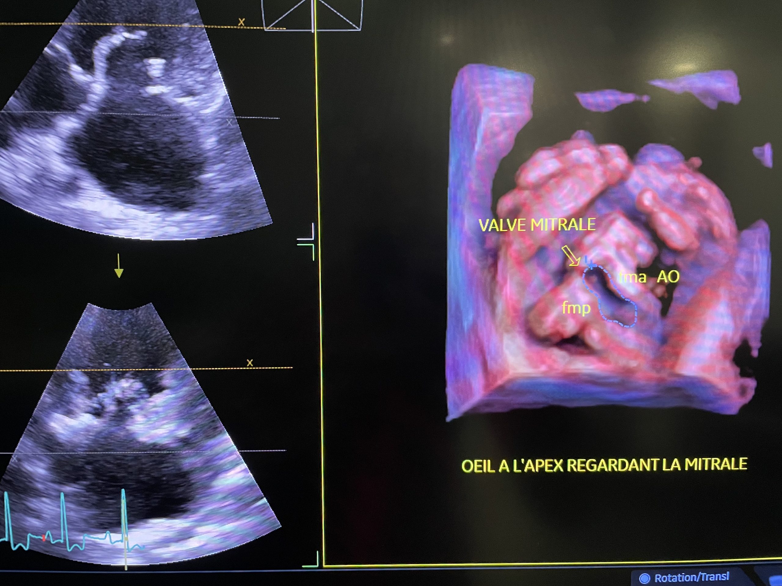 - Échodoppler cardiaque transœsophagien (ETO) 2D et 4D