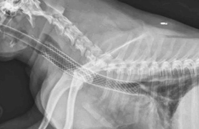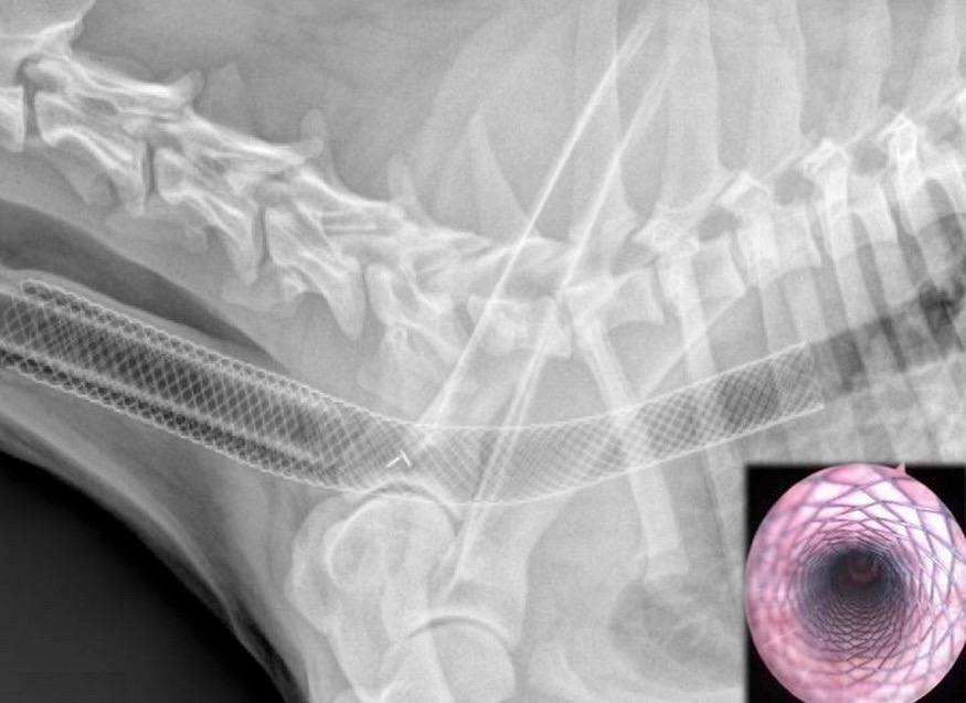 Pour poser un stent, nous faisons intervenir deux vétérinaires (dont le Dr JH. BOZON) et une assistante anesthésiste. L’intervention dure environ 30 minutes et l’hospitalisation 48h.